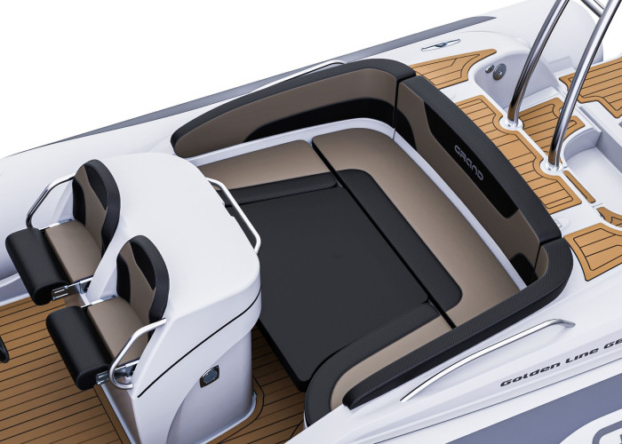 Size and power. An offshore 8.5m/28ft large inflatable boat with motor up to 400HP and optional twin engine installation. Luxurious and spacious center console RIB cruiser providing smooth, comfortable and safe navigation, with a large list of premium options such as freshwater system, head and fridge.