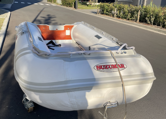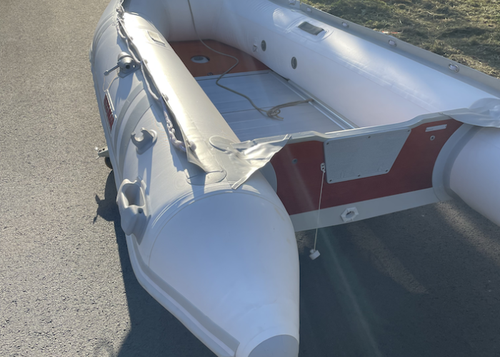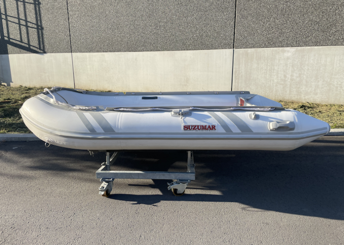 This Suzumar RIB is ideal as a dinghy or small RIB for tackling both inland waters and the sea. The RIB has served as a trade fair model and has therefore never seen water. Looks like new. Equipped with a wooden transom. Removable floor, making this the ideal boat to take with you on (mobile home) vacations. Recommended engine power: 15HP. Maximum weight: 620kg.