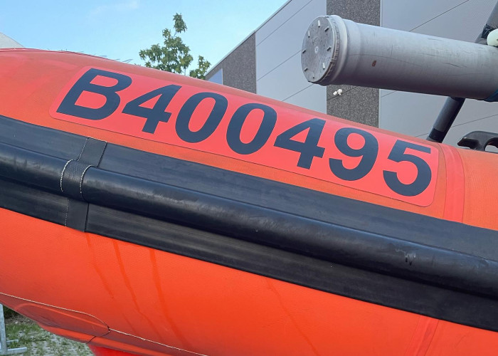 Vous pouvez commander chez nous le numéro d'enregistrement obligatoire pour votre bateau et nous le faire apposer. Nous veillons toujours à une pose professionnelle avec la colle et la procédure appropriées et visons la perfection dans la finition. Outre l'Hypalon comme sur la photo, des autocollants sont également possibles. Dans ce cas, nous optons également pour une qualité supérieure et utilisons des matériaux testés pour l'eau (salée).