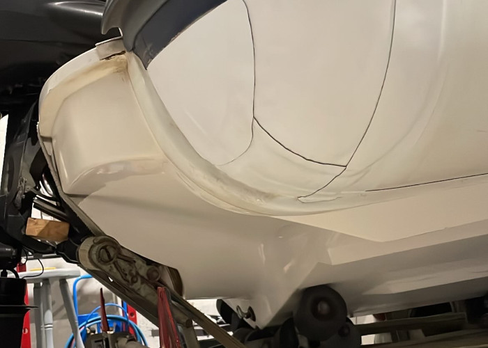 Après une tentative infructueuse de réparer à la maison une fuite d'air avec de la colle industrielle, ce tube nous a été confié pour une réparation professionnelle. Nous avons d'abord soigneusement éliminé les anciens résidus de colle. En raison de l'emplacement de la fuite d'air (dans le coude à l'arrière), plusieurs étapes ont été nécessaires pour réaliser une réparation durable. En effet, le tissu hypalon n'est pas assez souple pour former un coude en une seule fois. Nous avons ensuite procédé à une finition précise afin de conserver visuellement la forme d'origine. Enfin, nous avons ajouté une bande de renfort pour absorber les forces les plus importantes dans l'eau, ce qui minimise le risque de détachement de la réparation.