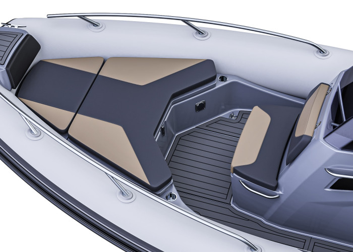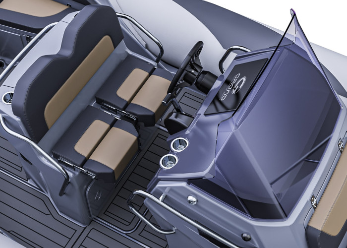 Stijl en comfort. Een offshore 7,3 m/24 ft grote opblaasbare boot met motor tot 250 pk. Esthetisch aantrekkelijk en zeer functioneel qua ontwerp, is dit een moderne en goed doordachte opblaasbare cruiser met middenconsole, met opties zoals zoetwater- en toiletvoorzieningen, koelkast en werkelijk indrukwekkende zonnedekken.