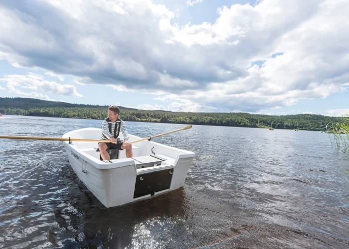 Het standaardmodel is ruim en biedt comfortabele zitplaatsen voor vier personen. Twee afsluitbare opbergruimtes zijn groot genoeg voor bagage, uitrusting en een brandstoftank. De boot kan worden voorzien van handrails en kussensets.