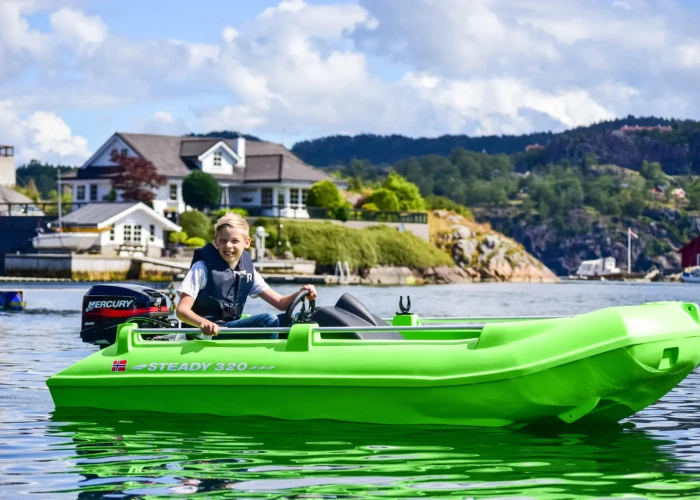Het model is zelflozend, heeft een groot laadvermogen en uitstekende vaareigenschappen met een 9,9/15 pk motor. Aluminium relingen zijn standaard, en achterin bevindt zich een groot, afsluitbaar opbergvak voor een brandstoftank en andere uitrusting. De stuurconsole met stoel en ruimte voor instrumenten is beschikbaar als een optie.