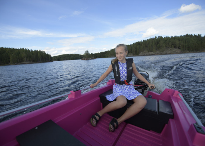 De stuurconsole met stoel en ruimte voor instrumenten is beschikbaar als een optie. De stuurconsole kan eenvoudig worden nageïnstalleerd en verandert de bijboot in een mini-archipel-jeep die gemakkelijk in plané gaat.