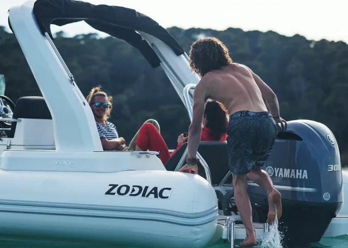De Medline 7.5 is perfect voor lange tochten op zee en is een echte privé-oase dankzij zijn transformeerbare oppervlak, dat kan worden omgevormd tot een zonnedek. De Medline 7.5 is ontworpen voor lange dagtochten en maakt deel uit van de nieuwe generatie Zodiac-boten: opblaasbare boten met een stijve romp die volledig gericht zijn op recreatie.
