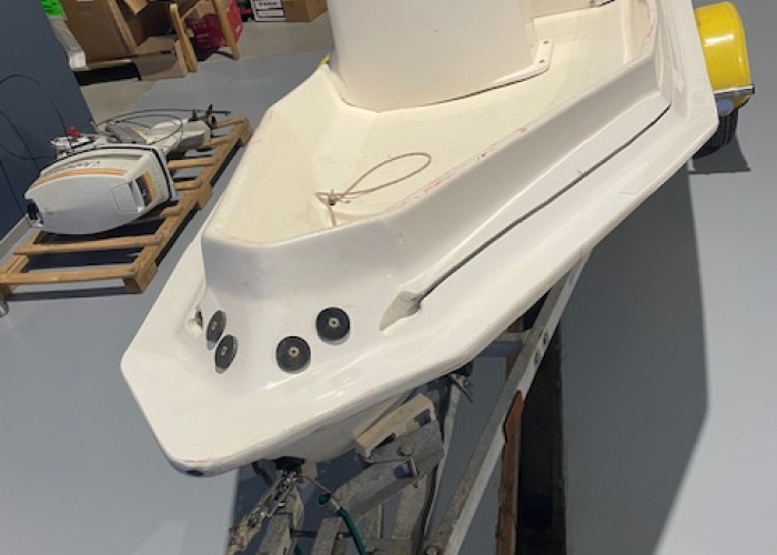 Na 20 jaar vaarplezier was deze romp aan een herstelling toe. Aan de bakboordkant was een scheur ontstaan in de romp waar de tubes op steunen. Een herstelling met polyester is in dit geval niet mogelijk omdat de romp moet kunnen blijven ‘bewegen’. In de plaats daarvan hebben we een op maat gemaakt RVS plaatje bevestigd om de scheur te stabiliseren. Het plaatje werd in het wit gelakt om zo goed als niet op te vallen. Daarnaast was de tube ook aan vervanging toe. Bij Zodiac zijn alle tubes met een inschuifsysteem waardoor ze heel gemakkelijk en ook vrij goedkoop te vervangen zijn. Deze Zodiac kan weer heel wat jaren mee!